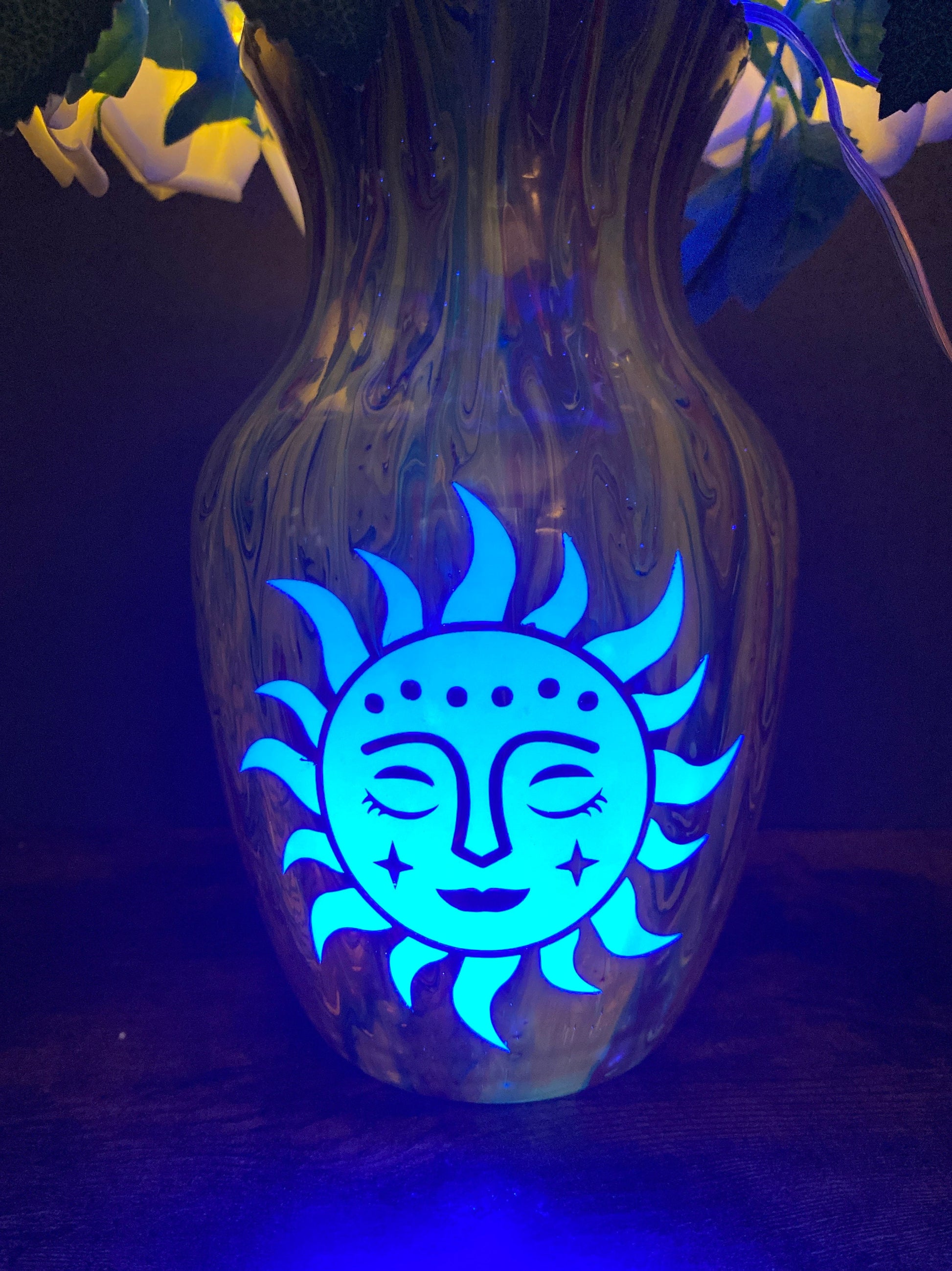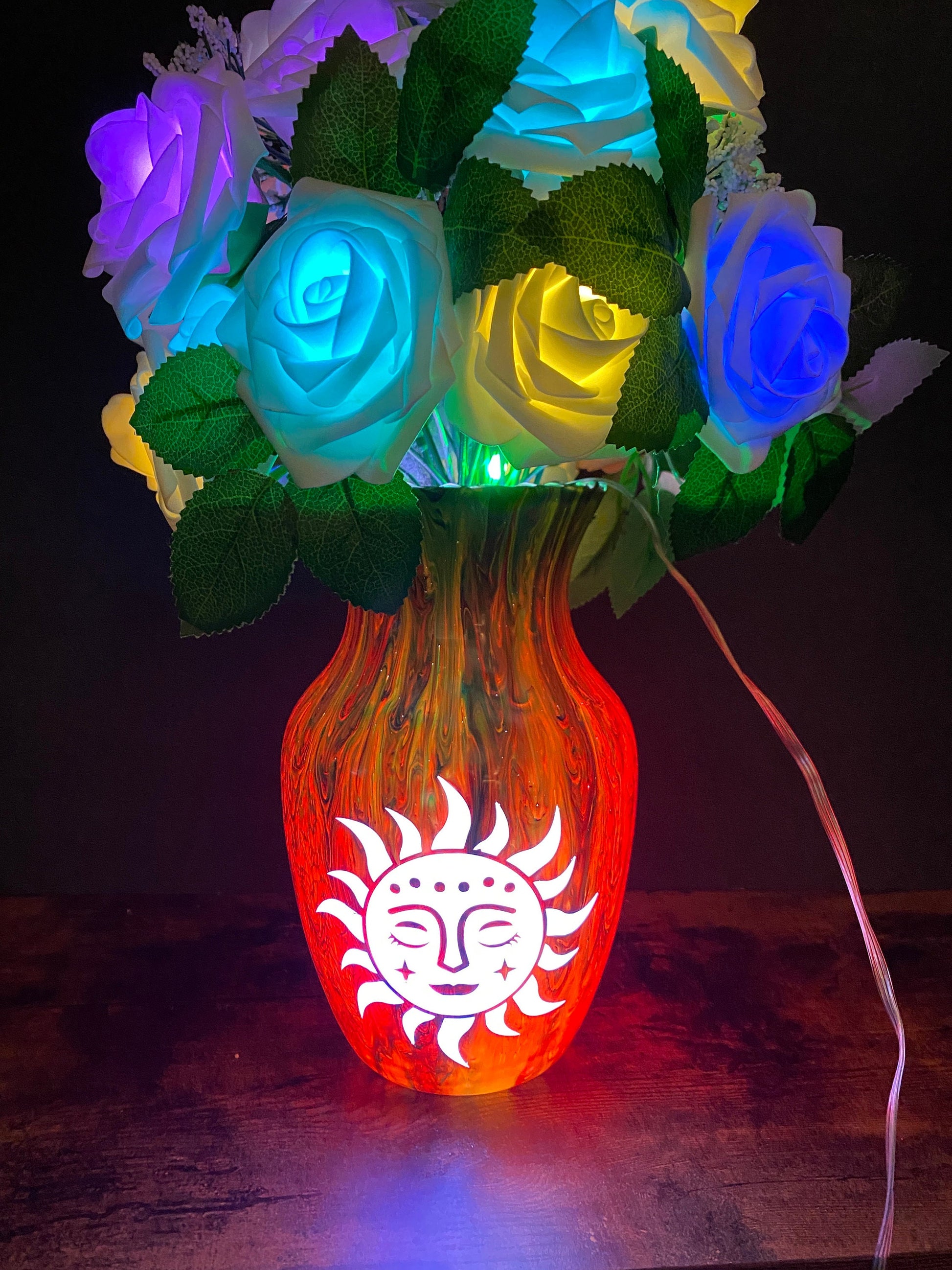 Sun Light Lamp Fairy Flowers, bedside table lamp, table centerpiece, painted vase, indie room decor